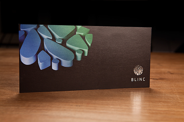 BLINC is a company that provides training services. The designed logo was made in wood and was used as a graphic element in the corporate identity. Two different colours were given, one for each founder. The logo on the business card was stamped in silver foil and the edges coloured to make a clear distinction. Client: Blinc Agency: Coming Soon